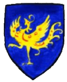 Das Wappen Alarons ist ein gelber Phoenix mit weinroter Zeichnung vor blauem Grund.